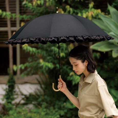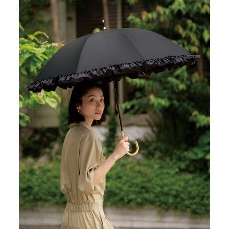 ふんわり重なるフリルが上品で華やかな印象の日傘
