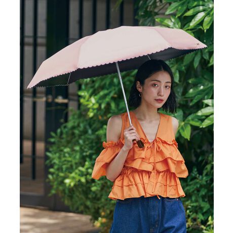 カラーはシンプルで持ちやすく、縁のカッティングがワンポイントの折りたたみ日傘。