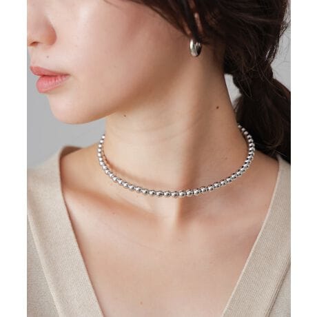 均一サイズのワイヤーボールが連なるネックレスは、主張しすぎないのに、しっかりと華やかさを添えてくれる存在です。大きすぎず小さすぎない絶妙なサイズ感で、Tシャツやニット、ワンピースまで幅広くマッチ。留め具のない仕様で、着脱もとても簡単。忙しい朝でもストレスなく身につけられます。軽い着け心地なので、デイリー使いはもちろん、ぱっと印象を明るくしたい日にも活躍。大人女性の「ちょうどいい」を叶えるネックレスです。