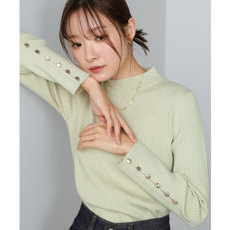 さりげないプチハイネックと、袖口のボタンディテールが大人っぽさを引き立てるリブニットトップス。低めのハイネックなので、首まわりがすっきり見えて、オフィスでも使いやすい上品な印象に仕上がっています。身体のラインを拾いすぎないリブ編みで、1枚着るだけで細見え効果も◎袖のボタンがアクセントになり、シンプルな中にも“きちんと感”と“かわいさ”が共存した万能トップスです。カラー展開も豊富なので、ベーシックにも差し色にも幅広く楽しめます。