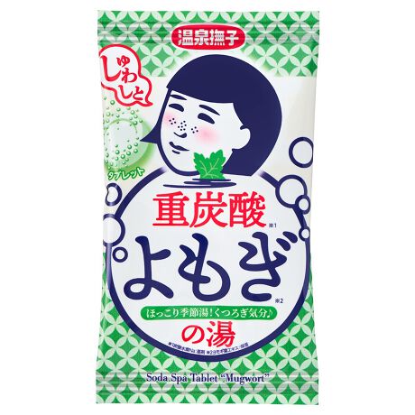 [型番:4992440039121]季節香る重炭酸※1の湯で、ぷくぷくしゅわぁ〜っと全身やわらぐタブレット型入浴料。温泉ミネラル※1inのタブレットをおひとつドボン!といれるだけ。おうちのお風呂がじんわりぽかぽか重炭酸※1の湯に。宮崎県産よもぎエキス※2配合の緑色にごり湯でお肌もしっとり。旬な香りと湯ざわりに全身やわらいで、くつろぎ気分♪キリっと爽やかよもぎの香り。※1 炭酸水素Na:基剤(炭酸水素Naは温泉にも含まれる成分です)※2 ヨモギ葉エキス:保湿