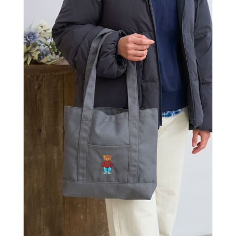 ゴールデンベアオリジナルのウエアを着た「JACKベア」刺繍が愛らしい帆布トートバッグ。