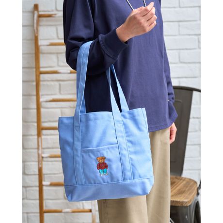 ゴールデンベアオリジナルのウエアを着た「JACKベア」刺繍が愛らしい帆布トートバッグ。