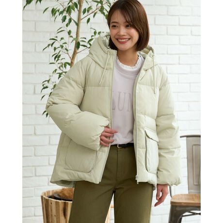 程よくマットな質感とソフトな風合いのポリエステル素材を使用したダウンジャケットです。