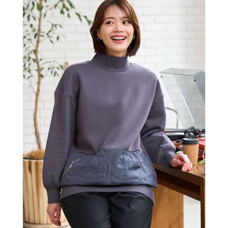 リブハイネックが顔まわりをすっきりと見せてくれるロングプルオーバー。
