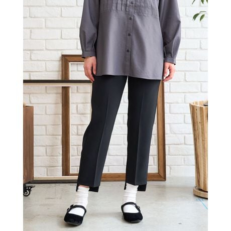 フロントZIPのハンサムな仕様でオフィスや学校行事にお薦めです。スッキリとした筒幅はオーバーサイズのトップスとも相性抜群です。