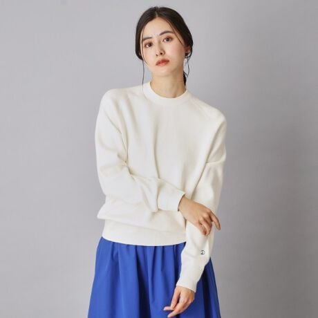 ベーシックなデザインでありながら、袖口や裾はリブの編地を切り替え袖にドレステリアのオリジナルD刺繍。