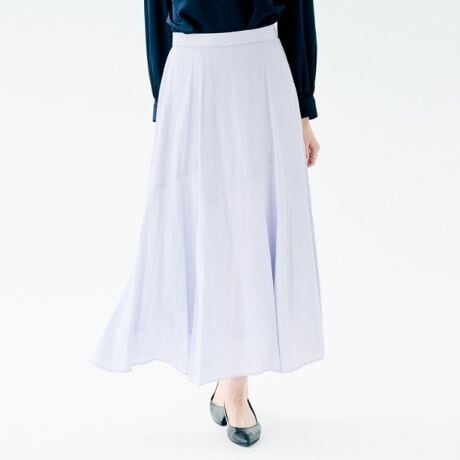 ななめに切り替えラインを施したデザインが特徴のスカートは歩くたびに美しいドレープが生まれ、軽やかな印象に。