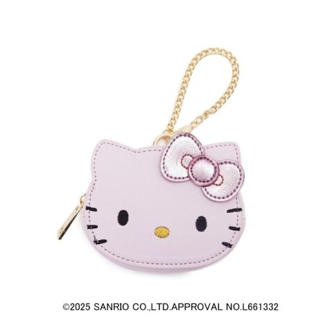 トレンドアイテムのバッグチャームは、ハローキティのお顔をパステルカラーの合皮で、リボンをメタルカラーの合皮でデザインしたミニポーチ型。