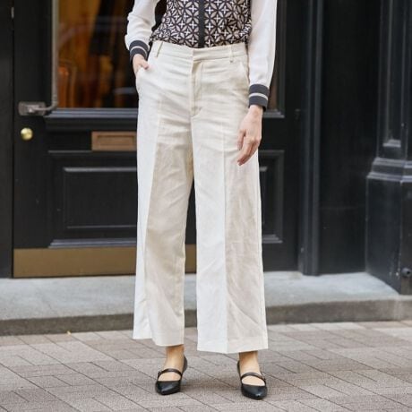 【毎シーズン大好評の愛されパンツ!快適さと美シルエットを両立したリネンブレンドワイドパンツ】