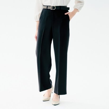 おなか周りにタックが無く、ヒップから裾へすとんと落ちるすっきりとしたシルエット。
