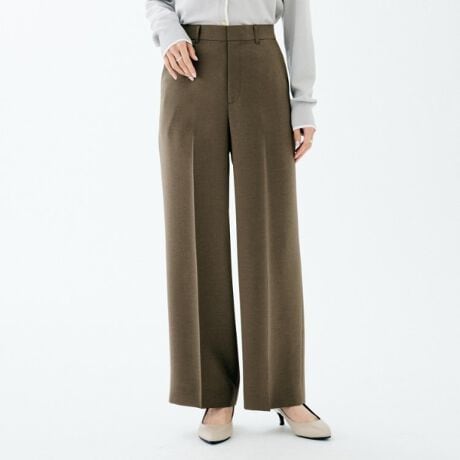 おなか周りにタックが無く、ヒップから裾へすとんと落ちるすっきりとしたシルエット。