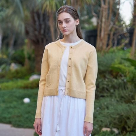 毎シーズン人気のウォッシャブルコットンカシミヤ混のカーディガン。
