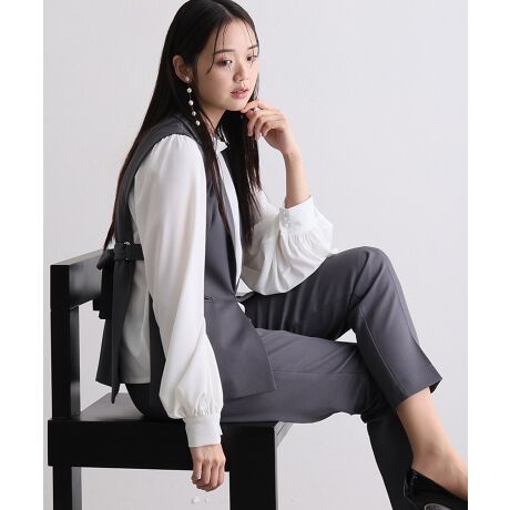 ジレ・パンツ・ブラウスのすっきり見えする上品な3点セット。