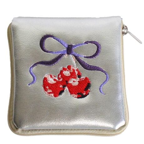 【お守り刺繍のポーチ】刺繍モチーフに意味が込められている、お守りのようなアクセサリーポーチ。【上品なスエード調】内側は柔らかく高級感ある生地を使用、大切なジュエリーを優しく守ってくれる〇【まとめて収納】指輪ホルダー、ピアスやネックレスの収納部の他に、小物が収納できるファスナーポケット付き◎【持ち運びやすい】手のひらサイズのコンパクト設計で、薄型だからバッグに入れても邪魔にならない◎