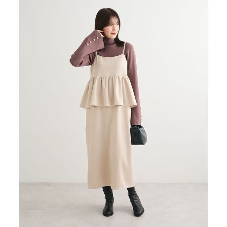 女性らしいペプラムシルエットのキャミソールワンピース。伸縮性のあるスウェード調生地は着脱しやすく締め付けない着心地が魅力。ペプラム切り替えは腰位置を高めに見せつつ、気になるウエストやヒップをさりげなくカバーしてくれます。バックスリット入りで足さばき良く抜け感もプラス。ストラップはインナーに合わせて調節可能なのでさまざまなアイテムと好相性です。透け感[なし]