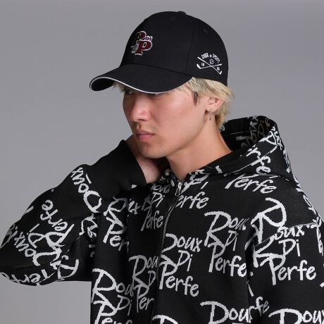 「ROUX DI PERFE」のブランドロゴとべーちゃんが刺繍されたオリジナルキャップ。