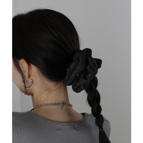 繊細な模様が美しく浮かび上がるジャガード素材のシュシュ。