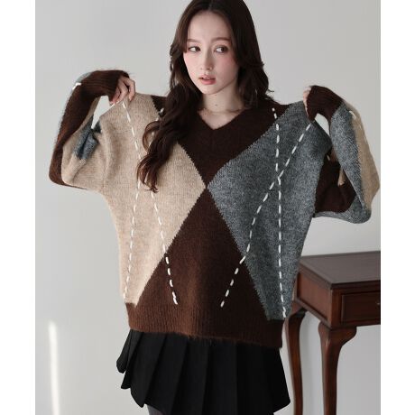 大きめのアーガイル柄が秋冬のムードを高めるニットプルオーバー。