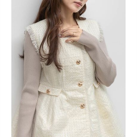 <26春夏新作>フリンジツイードペプラムセットアップ