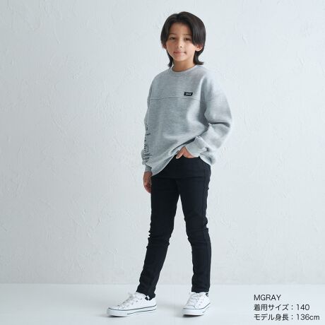 すっきりとしたシルエットに、サイドの英字プリントが映える裏起毛トレーナー。