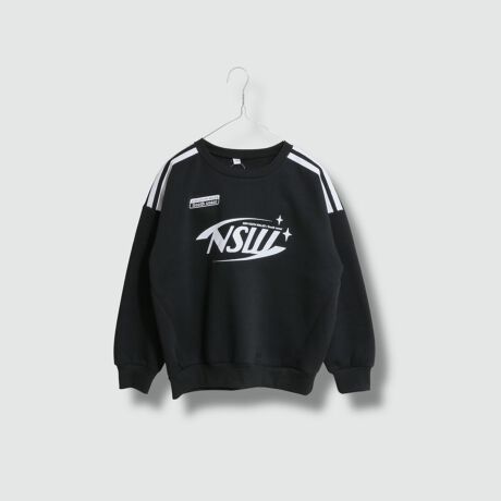 同色の肩のラインと胸のロゴのプリントが印象的なスポーティーなデザイン。