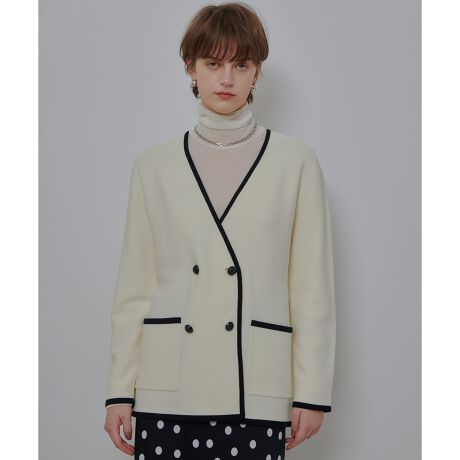 ガーターノーカラーニットジャケット