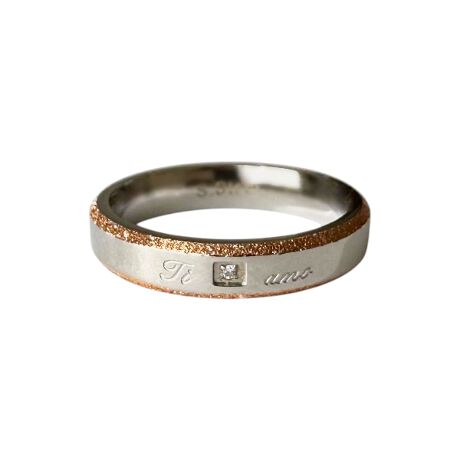 筆記体のお洒落なメッセージ刻印と小ぶりなストーンもデザインのポイントですです。
