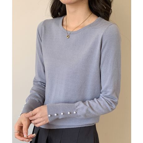 パールボタン付きクルーネックニットプルオーバー