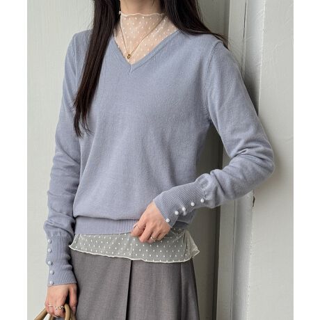パールボタン付きVネックニットプルオーバー