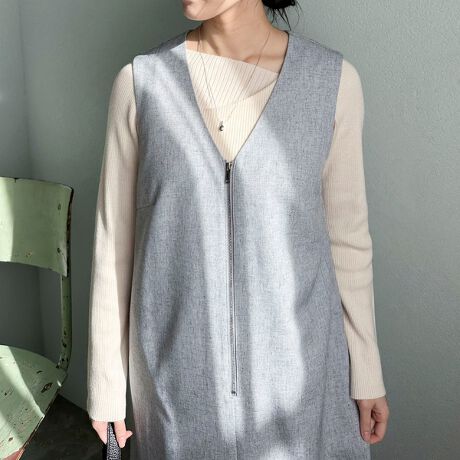 ・幅の違うリブを重ねたニュアンス感のあるVネックで顔回りをすっきり