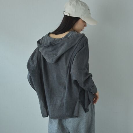 ・薄手なのでジャケットのインナーにしてフードを出した着こなしもおすすめ