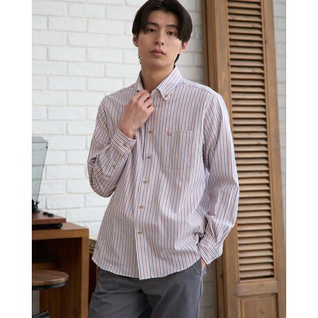 鮮やかな色目が印象的なボタンダウン襟のストライプシャツです。