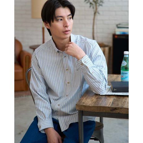 鮮やかな色目が印象的なボタンダウン襟のストライプシャツです。