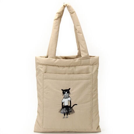 フロントポケットには、保坂さんのネコのモチーフをプリントと刺繍で表現し、チュールで作った立体的なスカートを穿かせました。