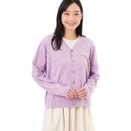 ウールアクリルナイロンニット フラワーリンクスVネックカーディガン