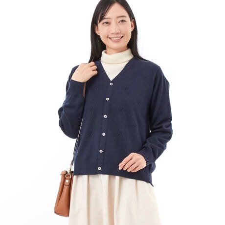 ウールアクリルナイロンニット フラワーリンクスVネックカーディガン
