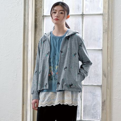 うさぎとデイジープリント裏毛フーディ/パーカ