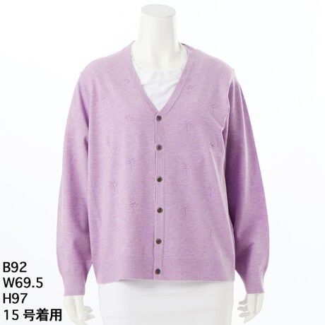 [15〜19号]ウールアクリルナイロンニット フラワーリンクスVネックカーディガン