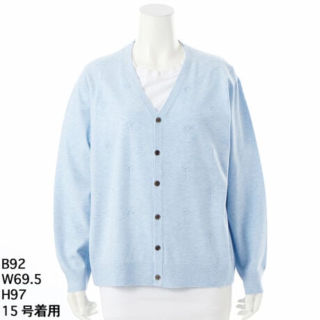 [15〜19号]ウールアクリルナイロンニット フラワーリンクスVネックカーディガン