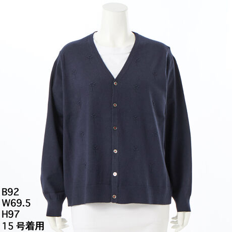[15〜19号]ウールアクリルナイロンニット フラワーリンクスVネックカーディガン
