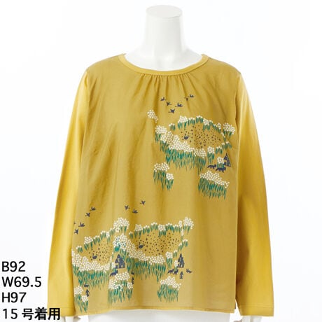 [15〜19号]コットンローン星花と湖プリント+ソフト天竺カットソー