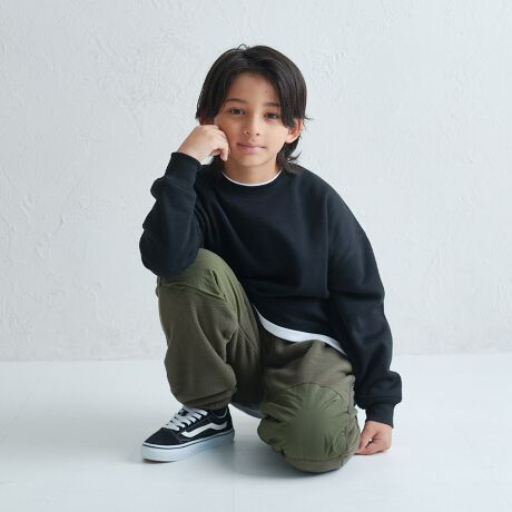 ゆったりとしたオーバーサイズシルエットでリラックス感のある裏起毛トレーナー。