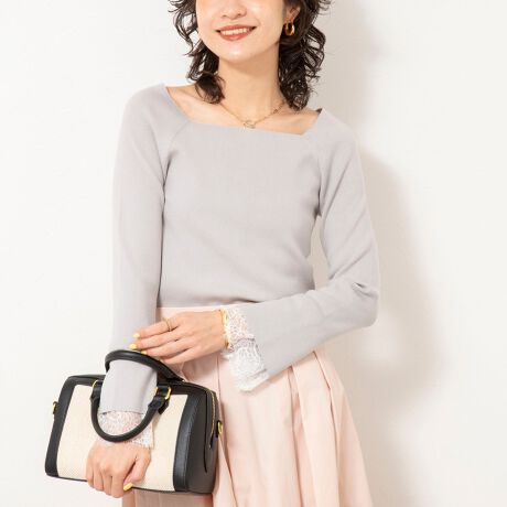 ・繊細な取り外し可のラッセルレースを袖口に付けた、シンプルなスクエアネックのプルオーバー