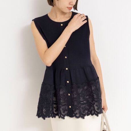 ・ミラノリブとレースで仕上げた品のあるニットベスト