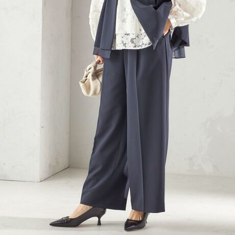 ラインが綺麗に見えるセミワイドパンツ。