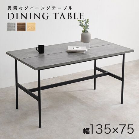 黒いスチールのフレームと、木目調・コンクリート調の天板で、