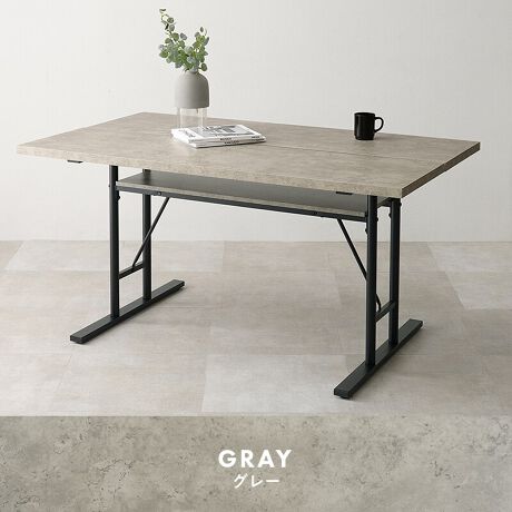 黒いスチールのフレームと、木目調・コンクリート調の天板で、