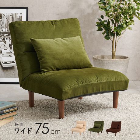 カラーはお部屋に彩りを添えるグリーン、上品なベージュ、シックなブラウンの全3色。うれしい同色クッション付き。