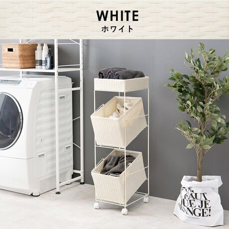 ワゴンのバスケットは傾斜タイプで、楽に衣類の出し入れやバスケットの取り外しができます。